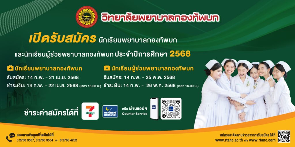 รับตรง 69 : วิทยาลัยพยาบาลกองทัพบก เปิดเกณฑ์ล่าสุด ไม่เข้าร่วม TCAS รับ 80 ที่นั่ง!