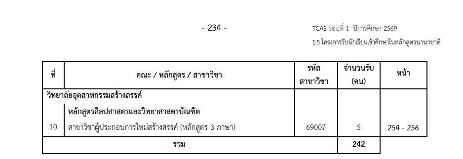5. โครงการรับนักเรียนเข้าศึกษาในหลักสูตรนานาชาติ (หน้า 233–256)