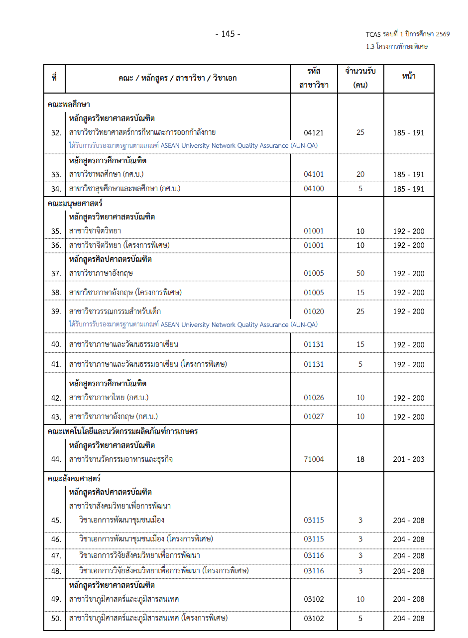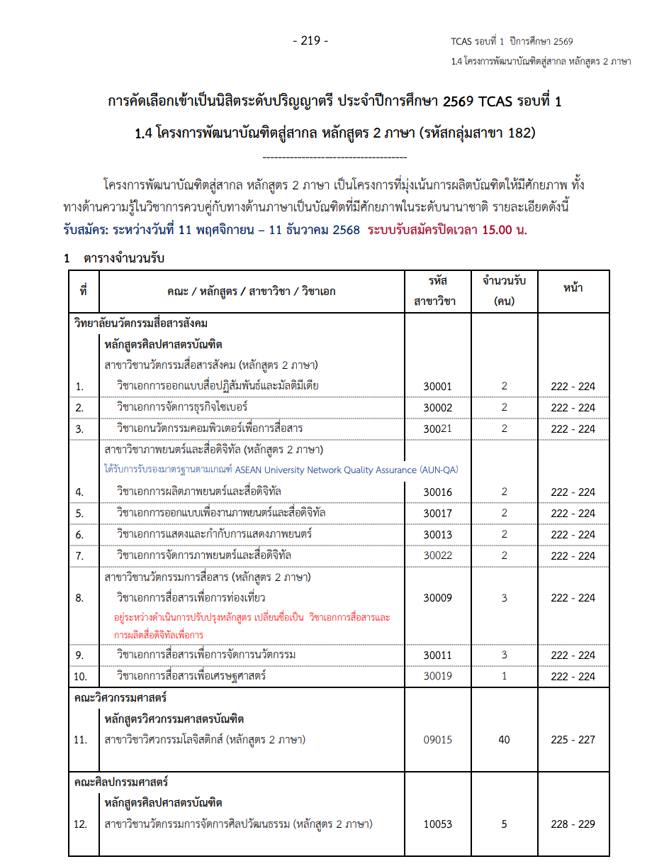 อ่านรายละเอียดเกณฑ์รับสมัคร : ระเบียบการรับสมัครฯ TCAS รอบที่ 1