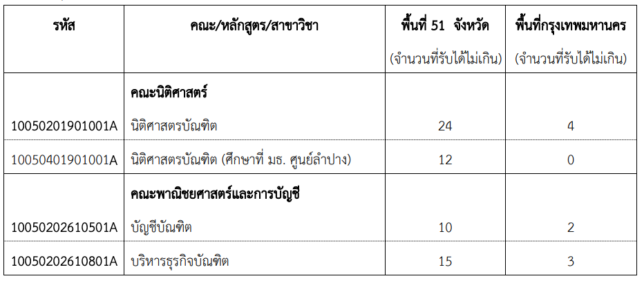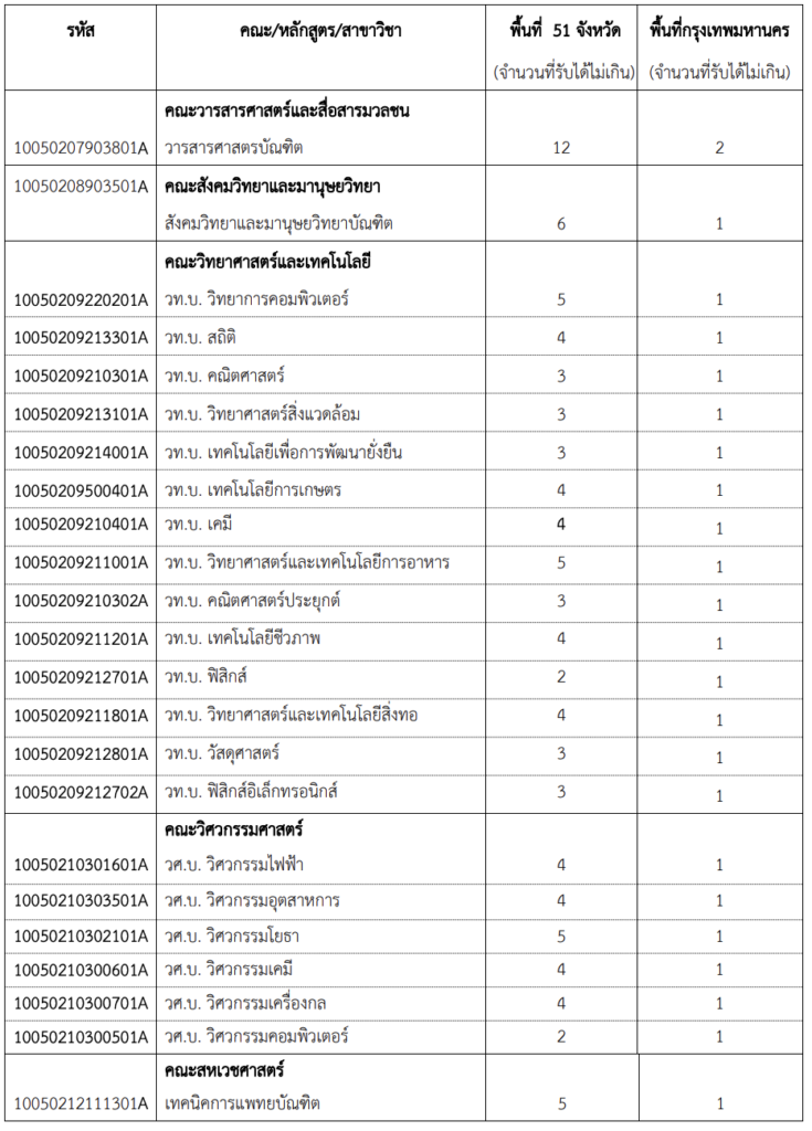 - มหาวิทยาลัยอาจรับไม่ครบจำนวน หากผู้สมัครไม่ผ่านเกณฑ์คุณสมบัติ
