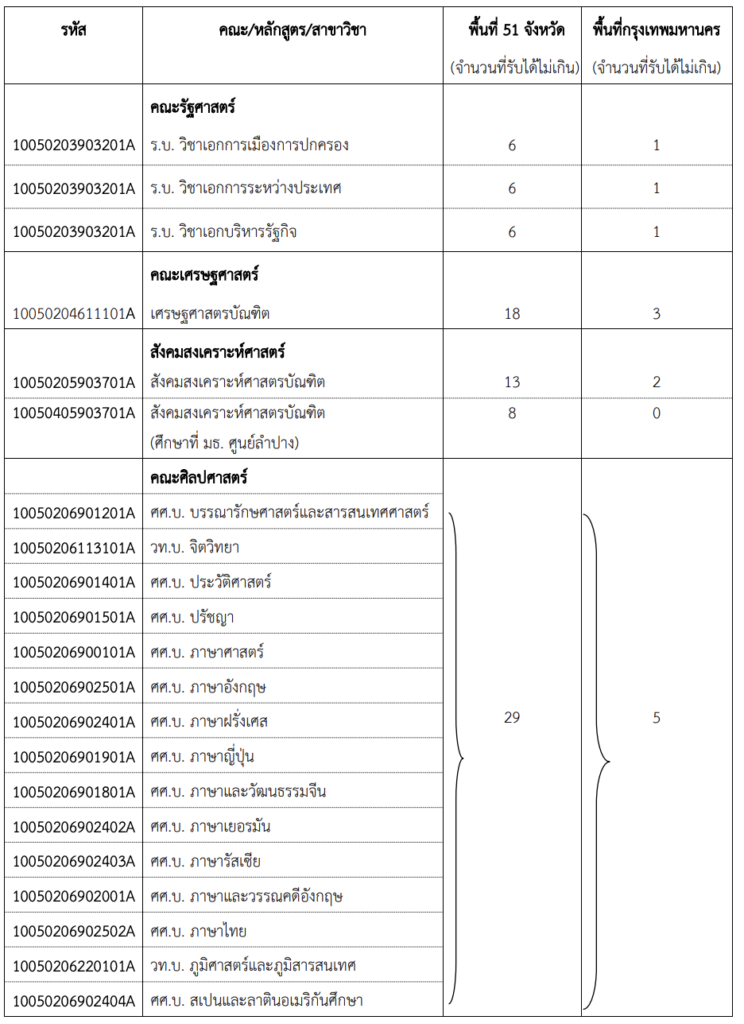 หมายเหตุ : คณะศิลปศาสตร์ผู้สมัครไม่ต้องระบุสาขาในการสมัคร โดยจะสามารถเลือกเข้าสาขาวิชาเอกได้ในช่วง